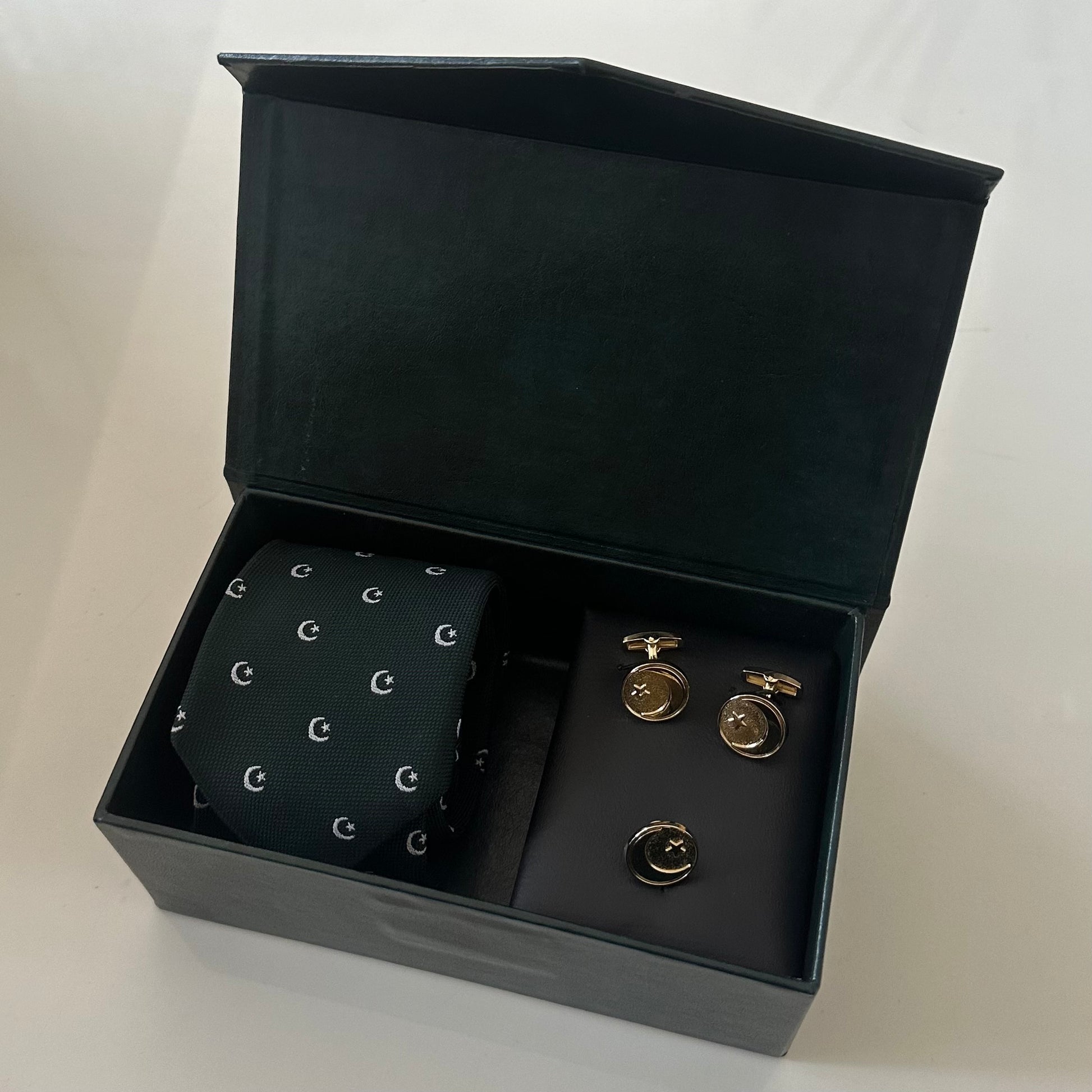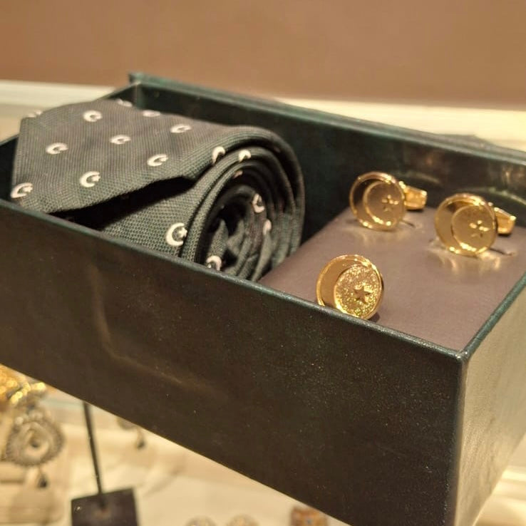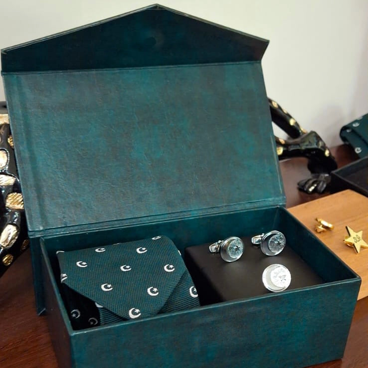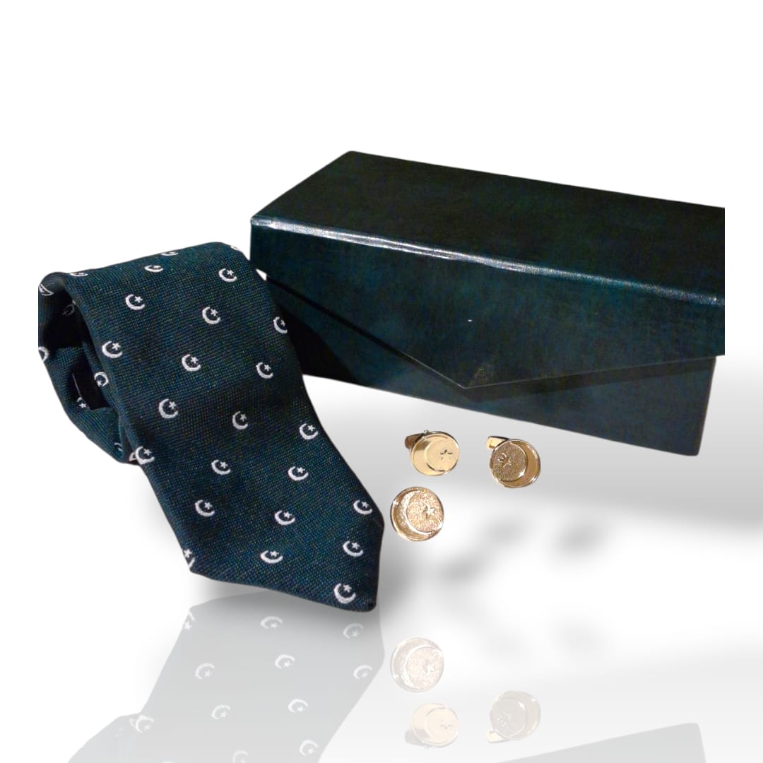 Celebrate the spirit of Pakistan with our exclusive Independence Bundle, featuring the iconic Chaand Sitara Tie, Chaand Sitara Cufflinks, and Chaand Sitara Lapel Pin. Crafted with precision and pride, each piece showcases the timeless crescent-and-star emblem — a symbol of unity, resilience, and national pride. Perfect for formal occasions, national events, or gifting to a patriot at heart, this set lets you wear your love for Pakistan with elegance and style