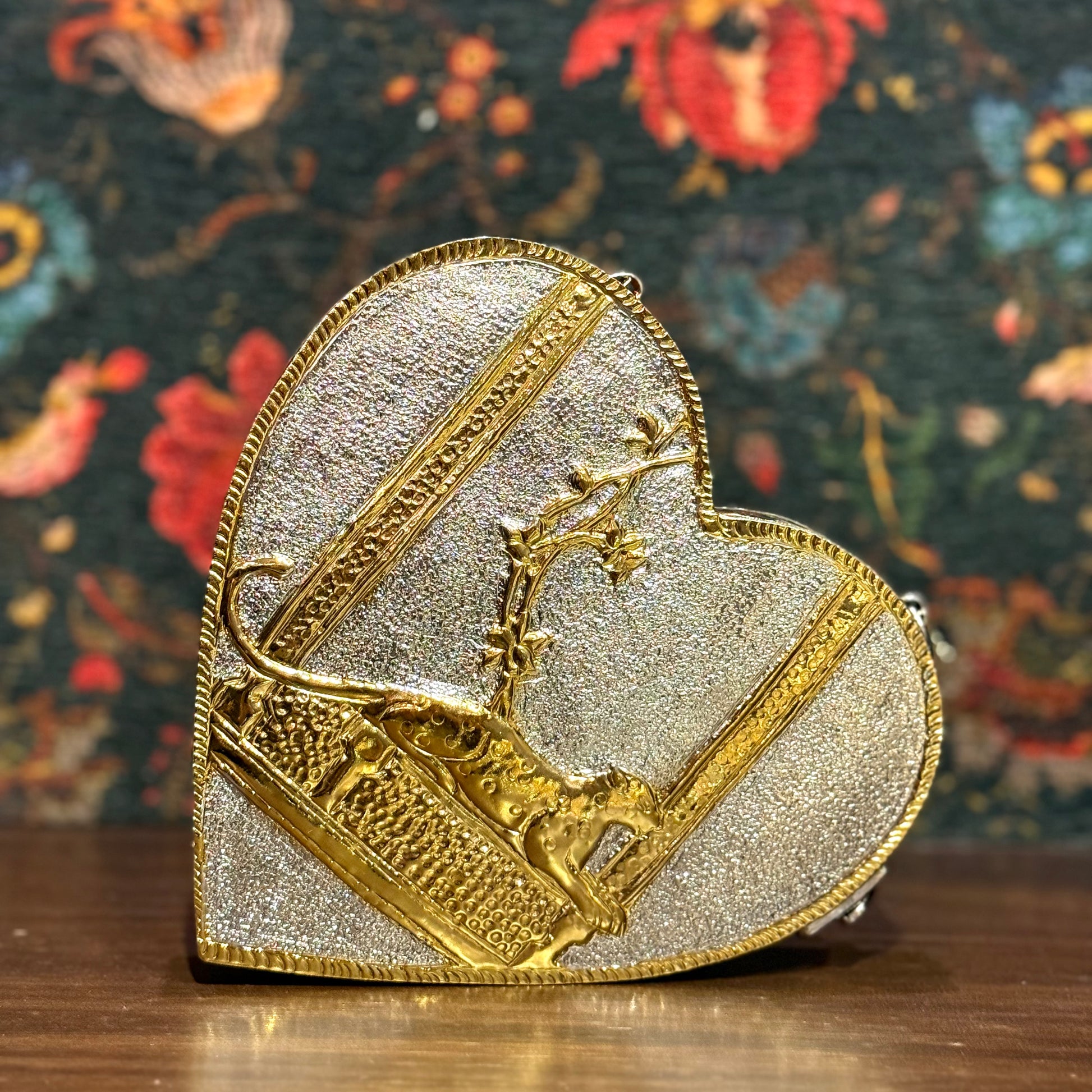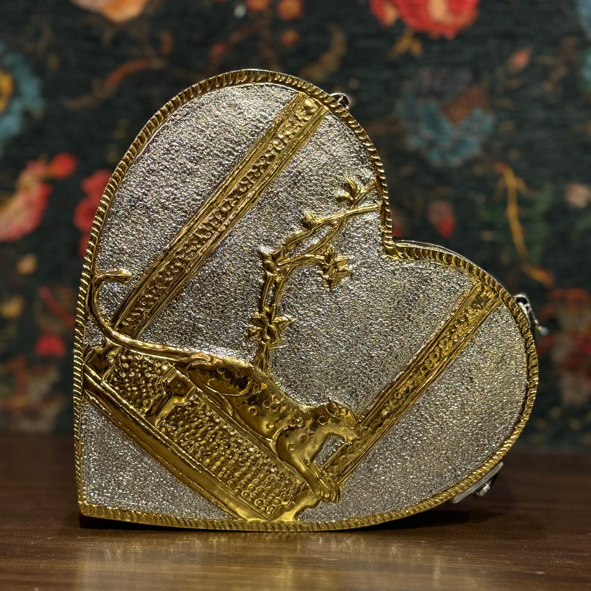 The Zar-e-Jangal collection celebrates the untamed elegance of nature. Each clutch is hand-crafted in brass, gold-plated and meticulously polished, drawing inspiration from leopard grace and jungle mystique.