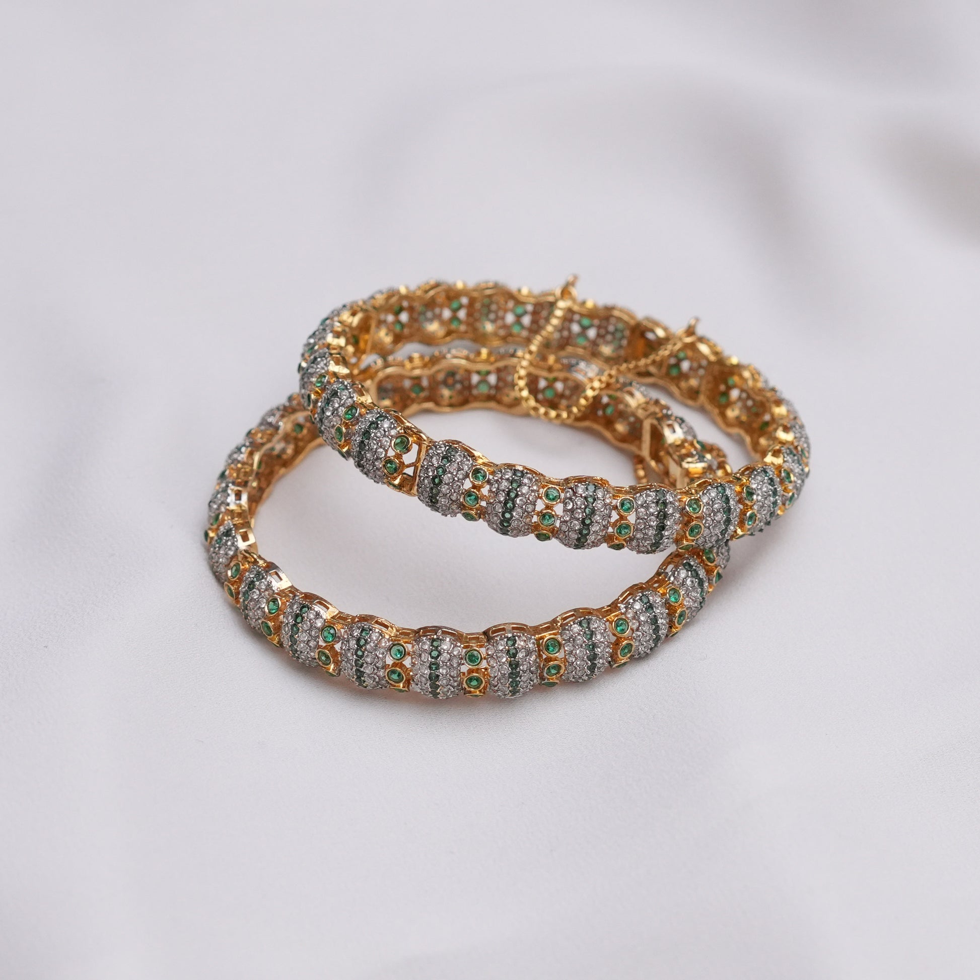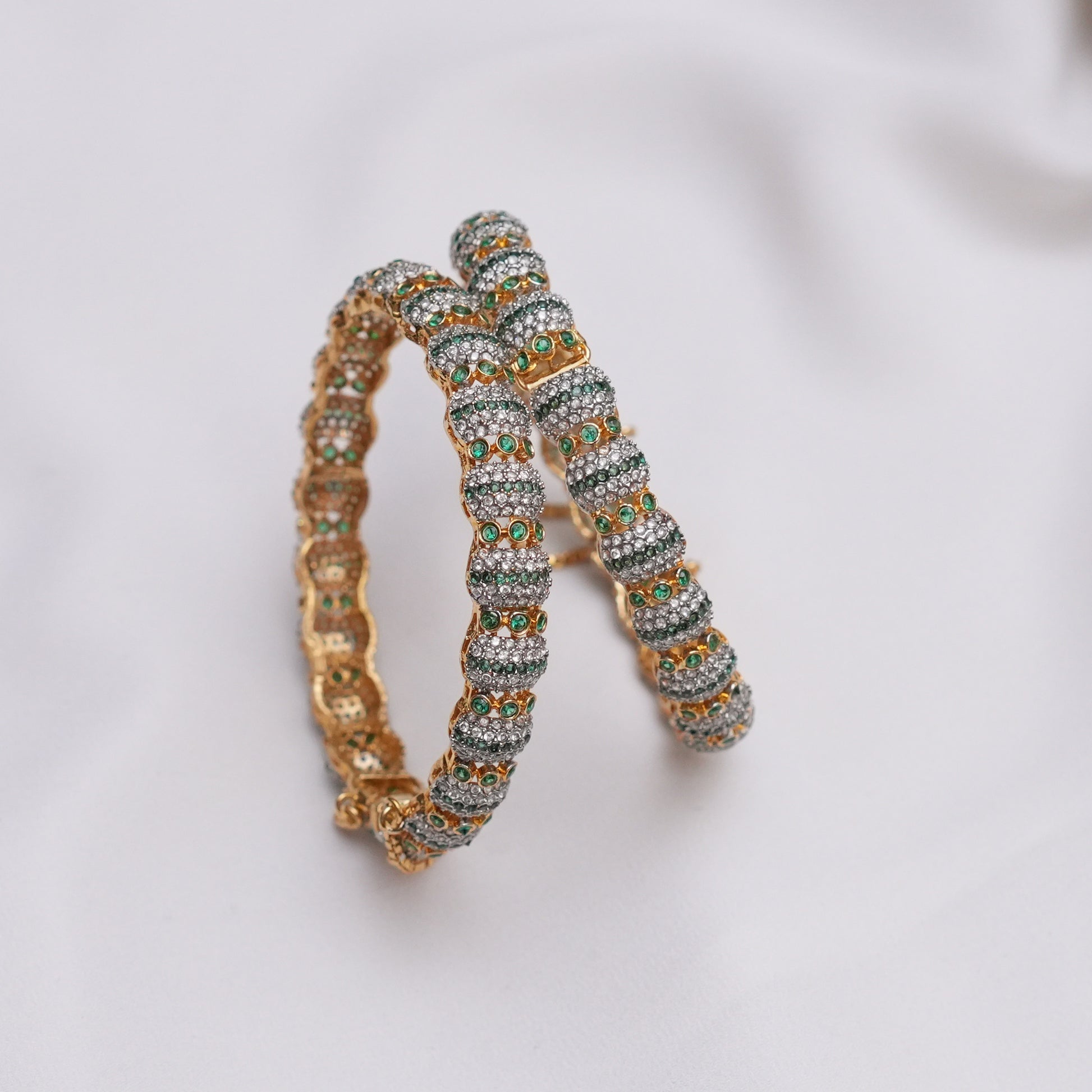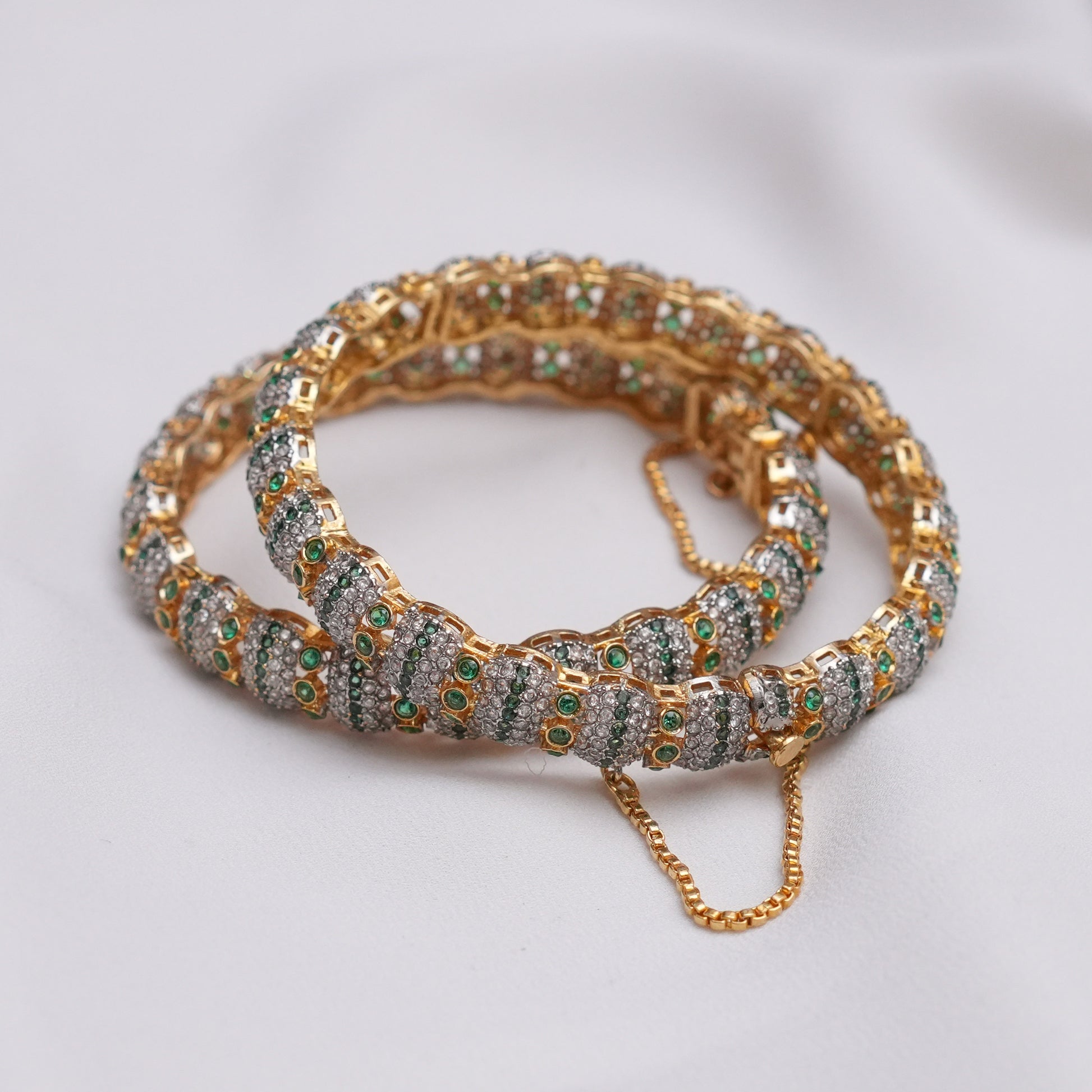 Adorned with radiant rubies set in intricate floral patterns, these bangles offer a luxurious touch of sophistication. The openable design ensures a comfortable fit, making them perfect for any special occasion.