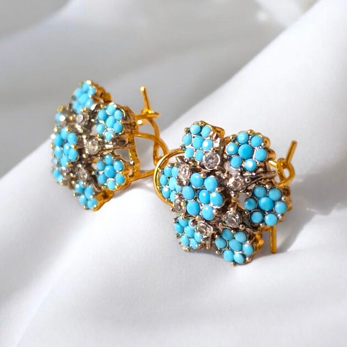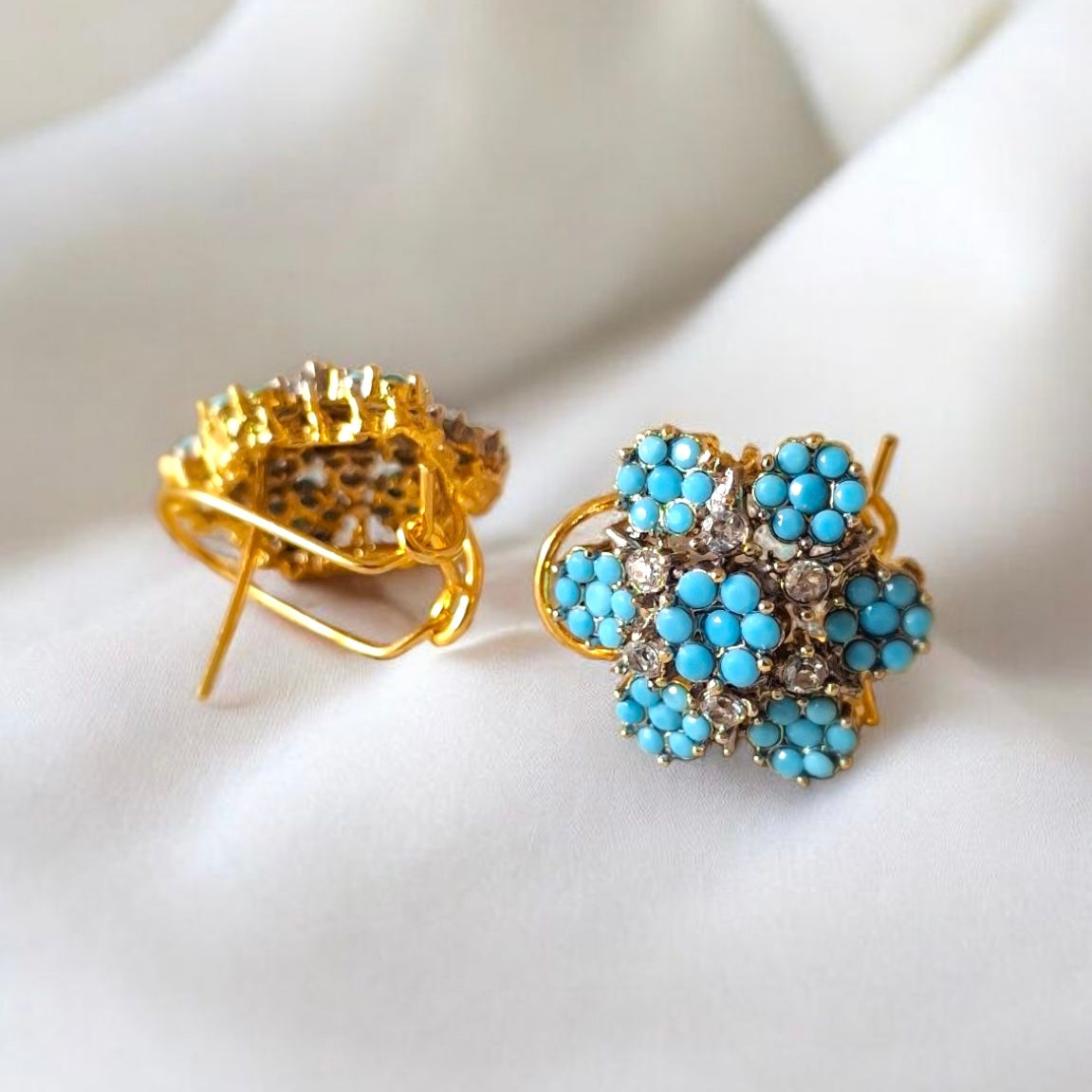 Delicately arranged in a floral-inspired cluster, the Cluster Floret studs feature sparkling stones set in a refined gold-plated base. Their compact, elegant silhouette makes them perfect for everyday wear while still adding a touch of timeless charm. Lightweight, versatile, and beautifully detailed — a classic piece that elevates any look with effortless grace.