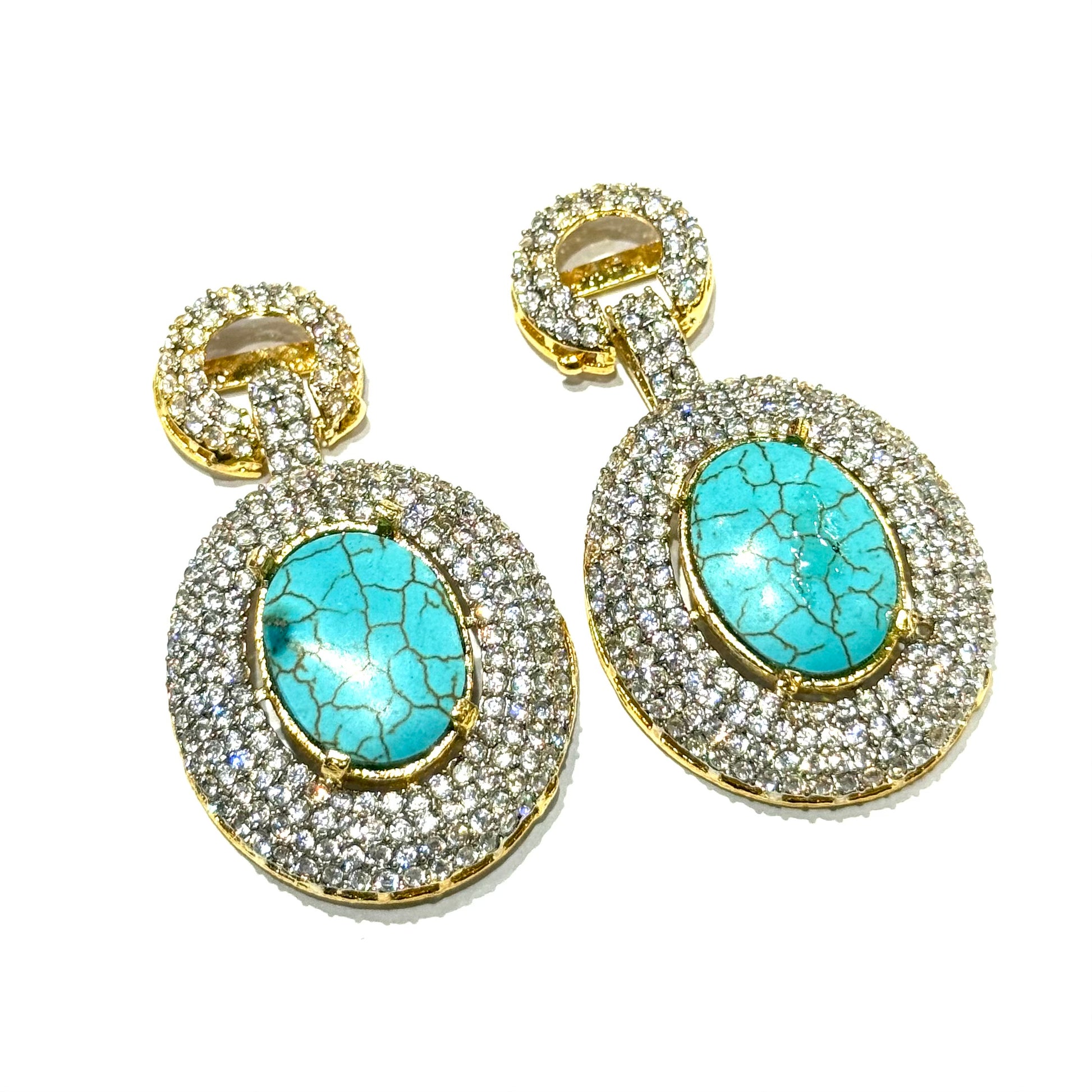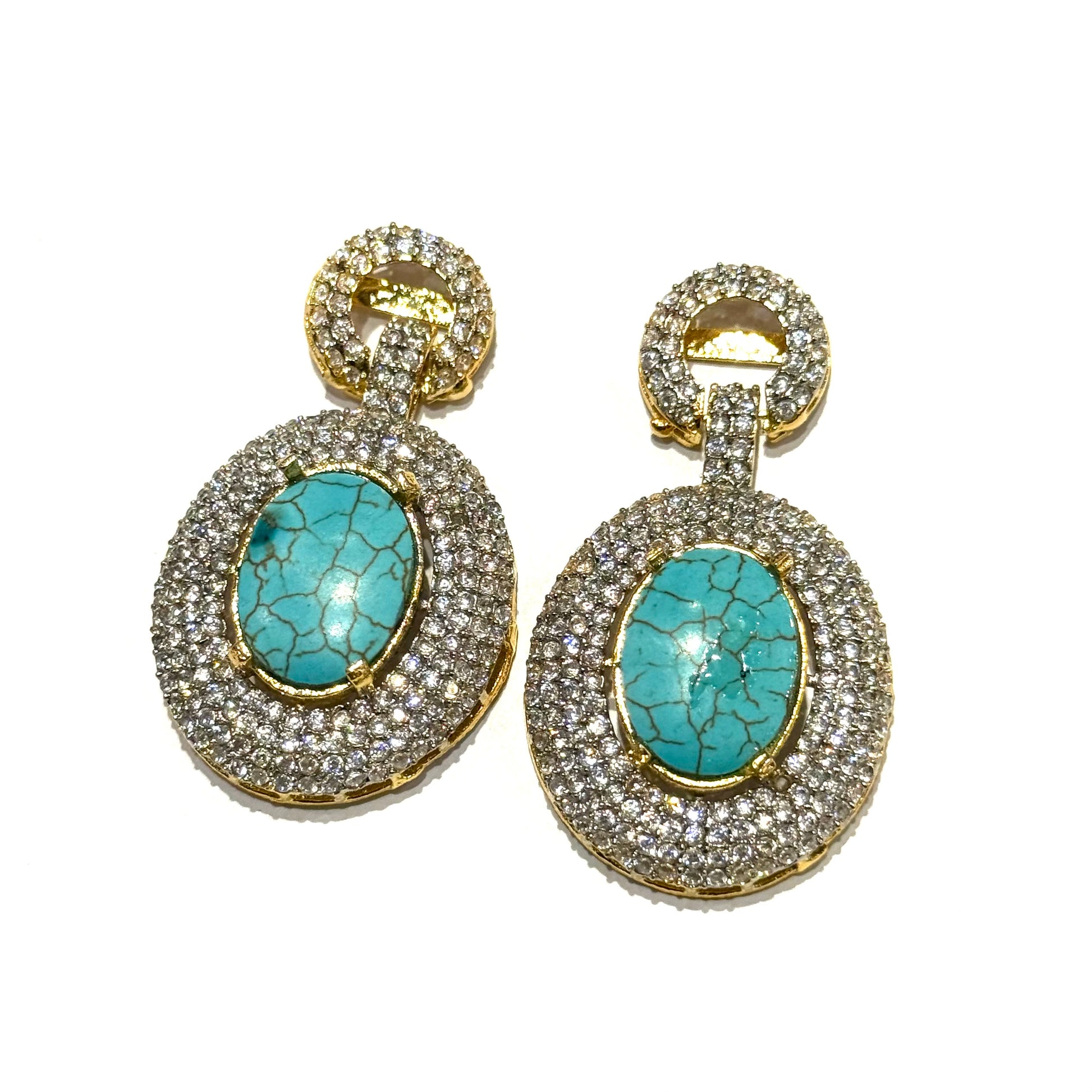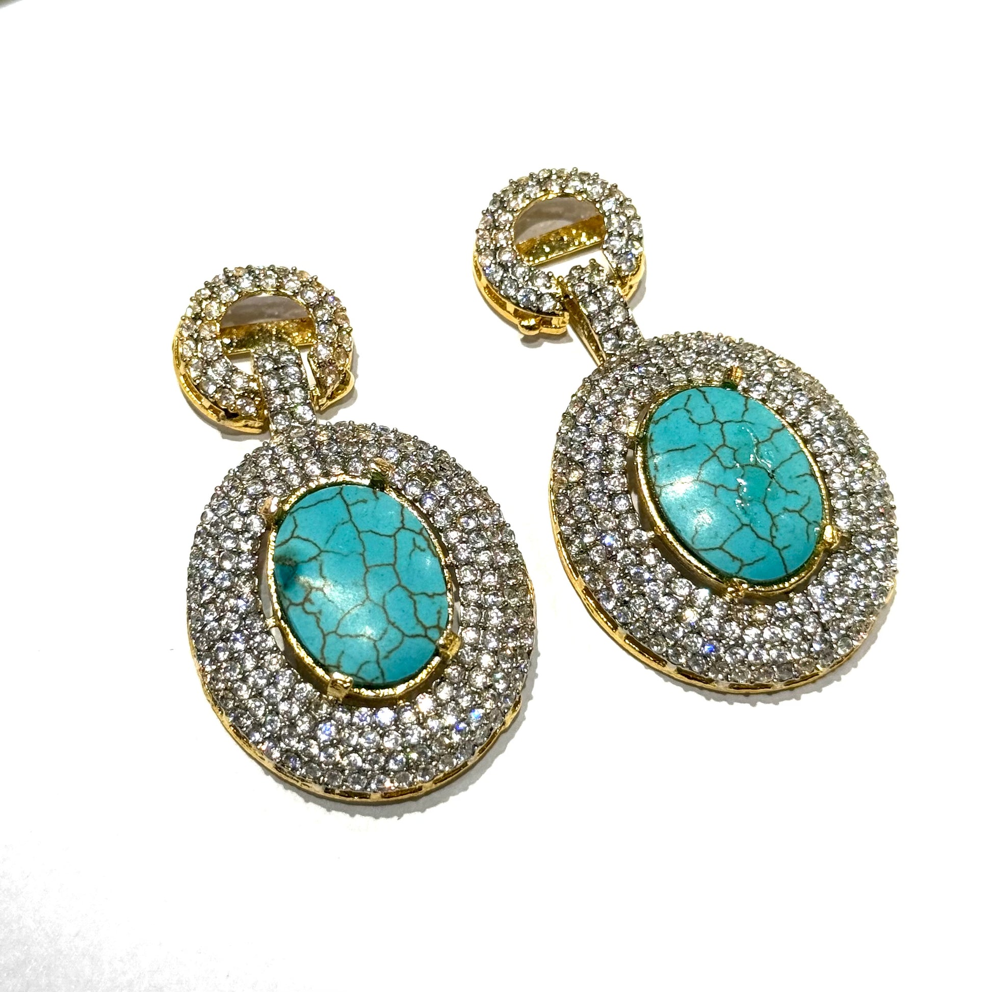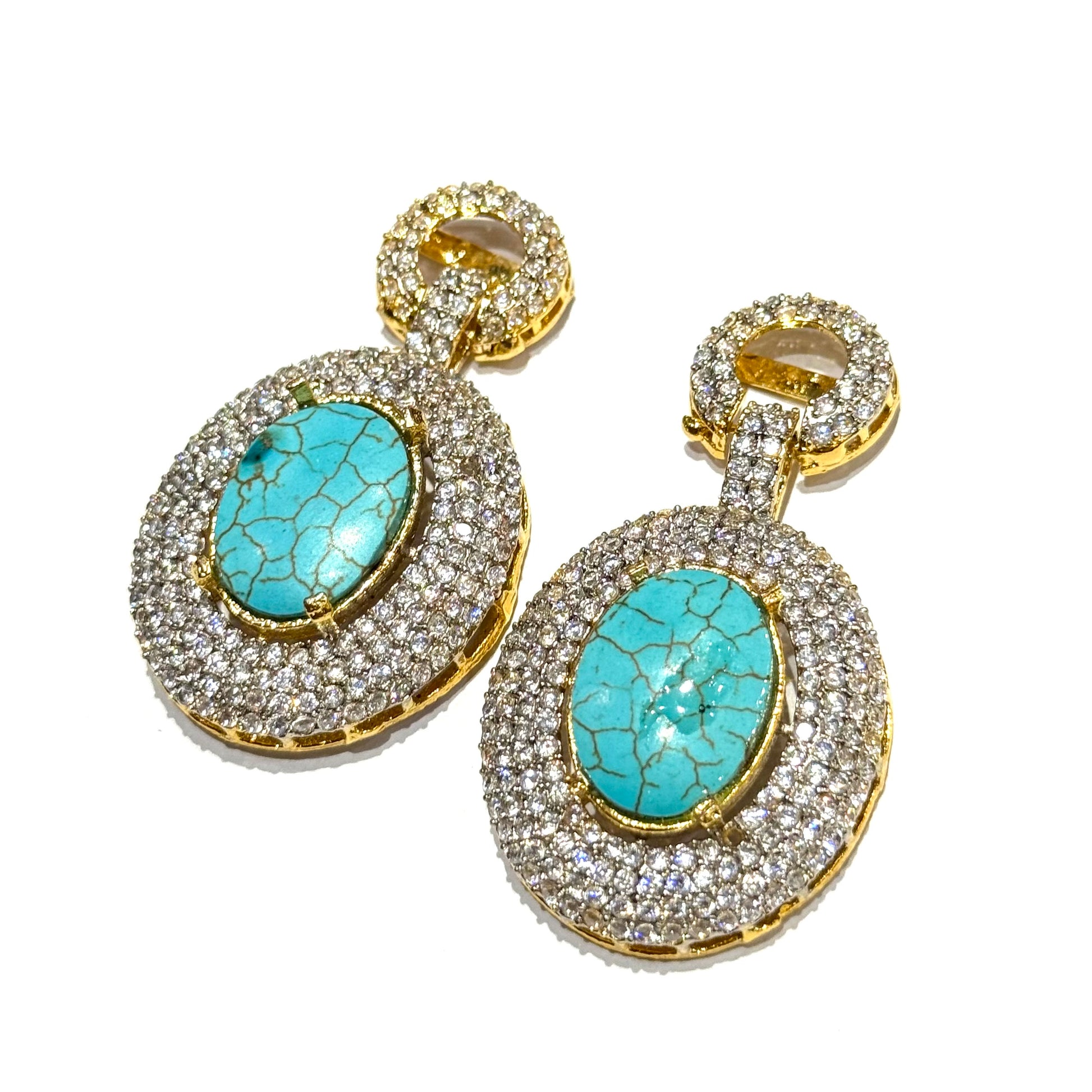 A perfect blend of grace and sparkle, these long hanging earrings feature luminous zircons paired with high-clarity feroza that catch the light with every movement. Crafted in a sleek, elongated silhouette, they offer a refined drop that frames the face beautifully.