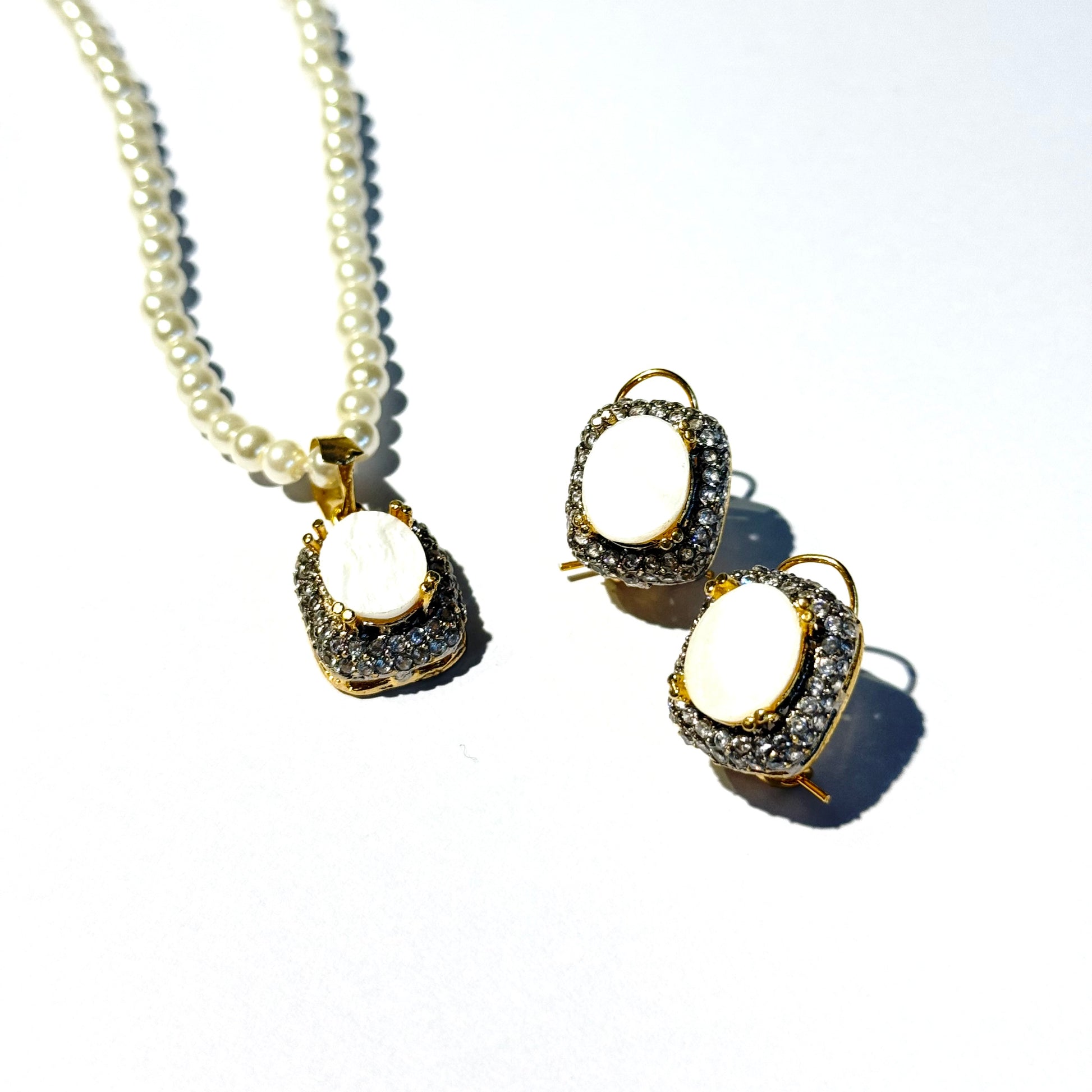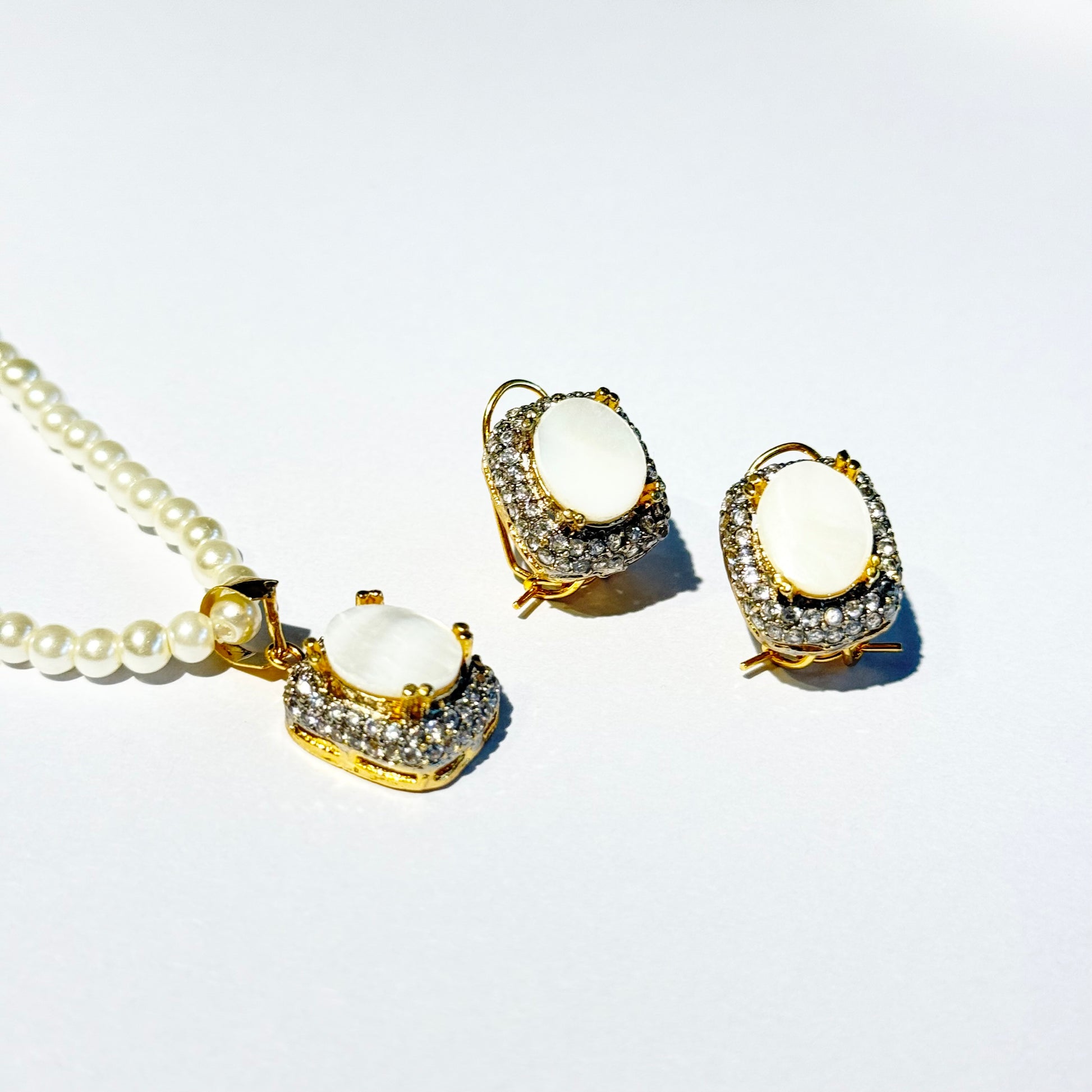 The pendant is suspended from a fine maala, completing the look with sophistication. Ideal for special occasions, this set captures timeless beauty and exquisite craftsmanship.
