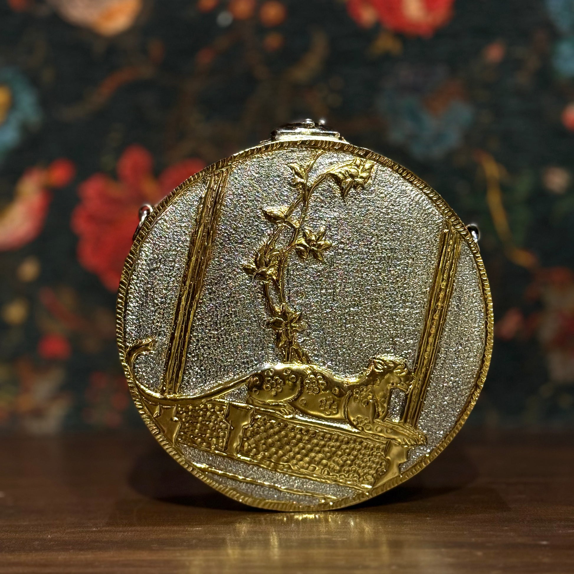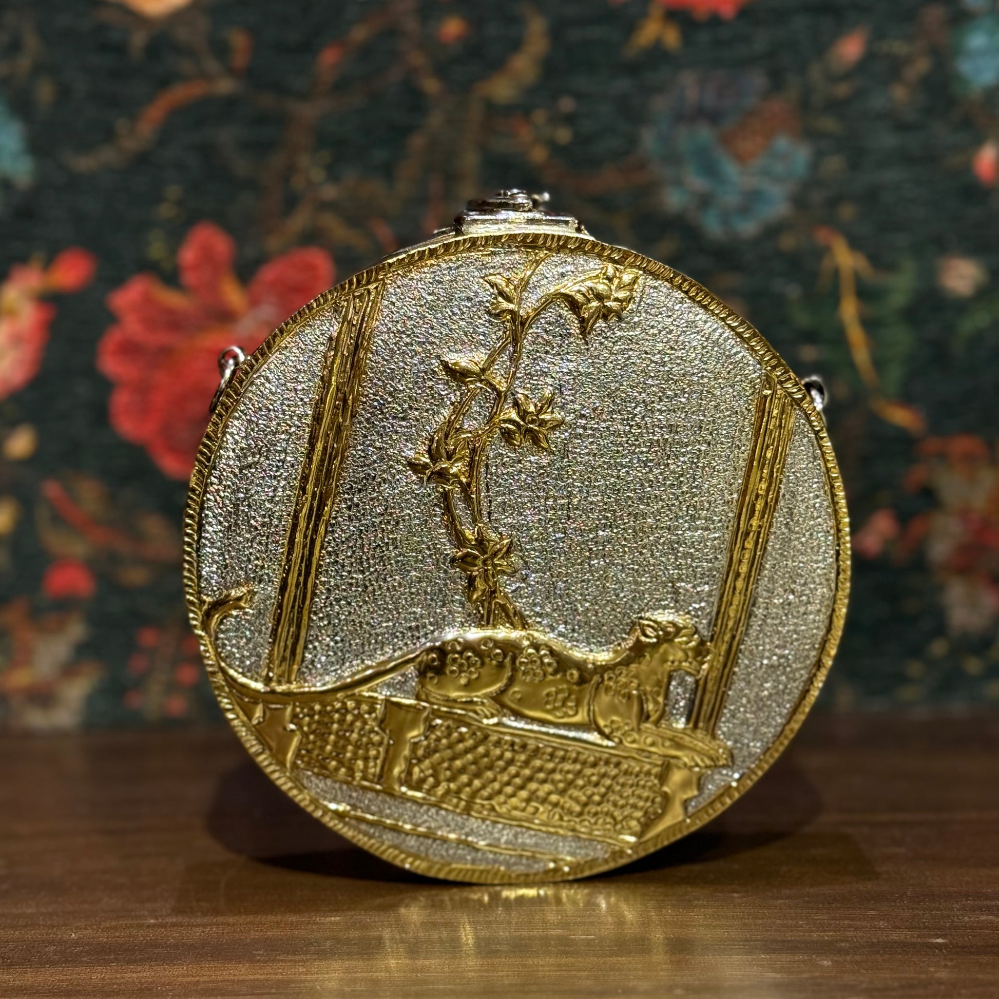The Zar-e-Jangal collection celebrates the untamed elegance of nature. Each clutch is hand-crafted in brass, gold-plated and meticulously polished, drawing inspiration from leopard grace and jungle mystique.